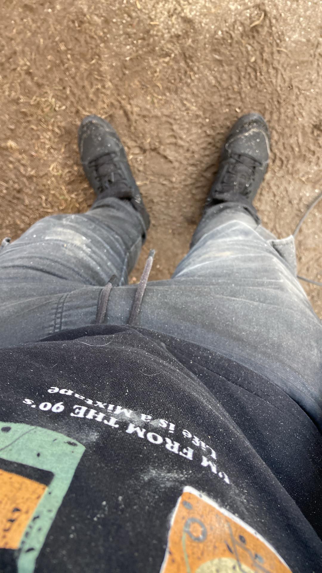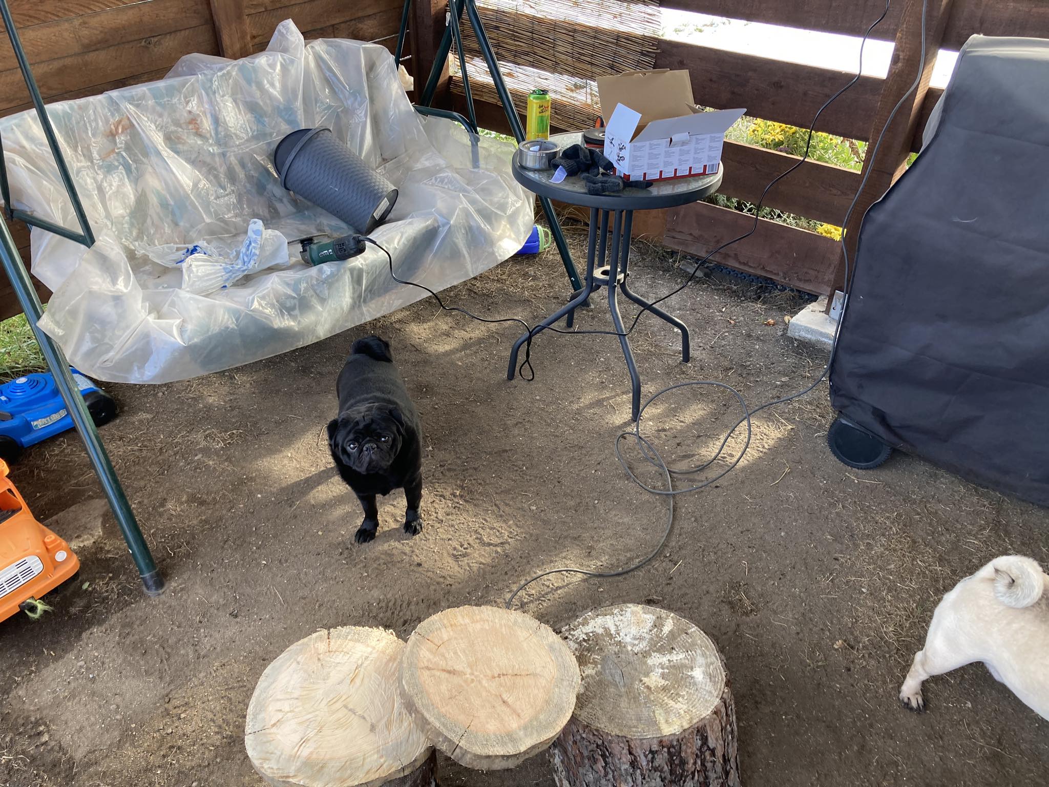 Next stop, our garden - I did not want to have to deal with all the mess this thing is about to make. I had the wood, I had the tool, I had my green Big Shock, I left the car playing music in the background and set up a workspace for myself